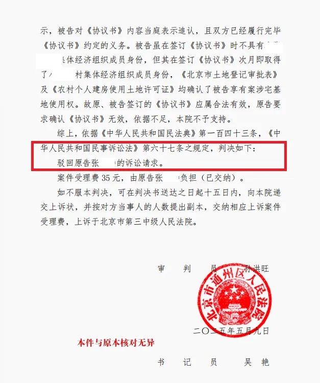 尊重历史,正视现实:判断合同效力,不能机械地只看签约瞬间,而要结合合同履行全过程。被告在签约后仅半个月就完成了户口迁移,并通过村委会和政府的层层审核,取得了宅基地使用权登记和翻建许可。这充分说明,其身份早已补正,且其权利得到了基层组织和政府的正式确认。