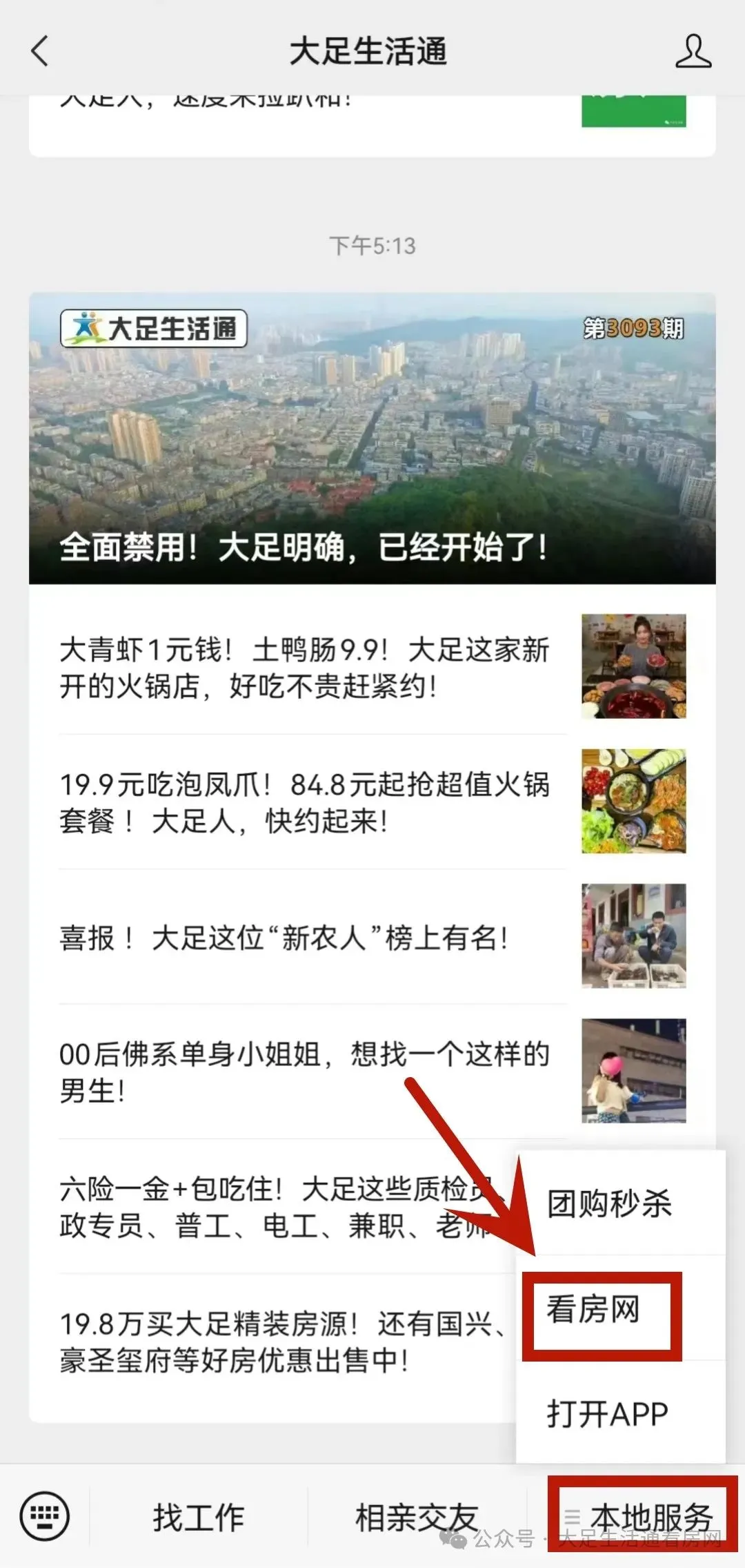 进入大足生活通看房网公众号