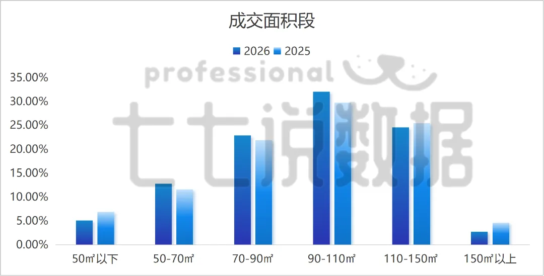 2026年同期,90-110㎡面积段占比高达32.01%🏆,稳坐绝对主力宝座,无可撼动!