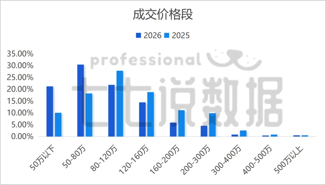 50-80万房源占比30.42%,较2025年同比增长66.87%📈,低价房入市热情彻底爆发🔥!