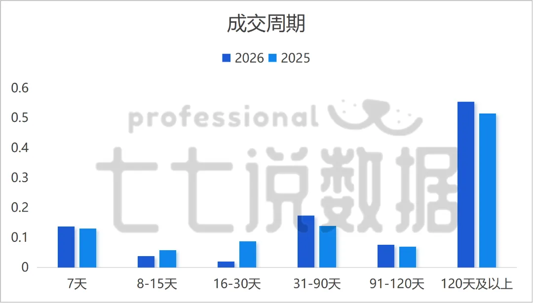 120天以上长期滞销房占比达55.36%,较2025年小幅增长7.43%,这类房源多集中在配套不完善、户型不佳区域😫,去化难度突出,“好房抢、差房弃”的现象依旧显著,房源品质直接决定去化速度!