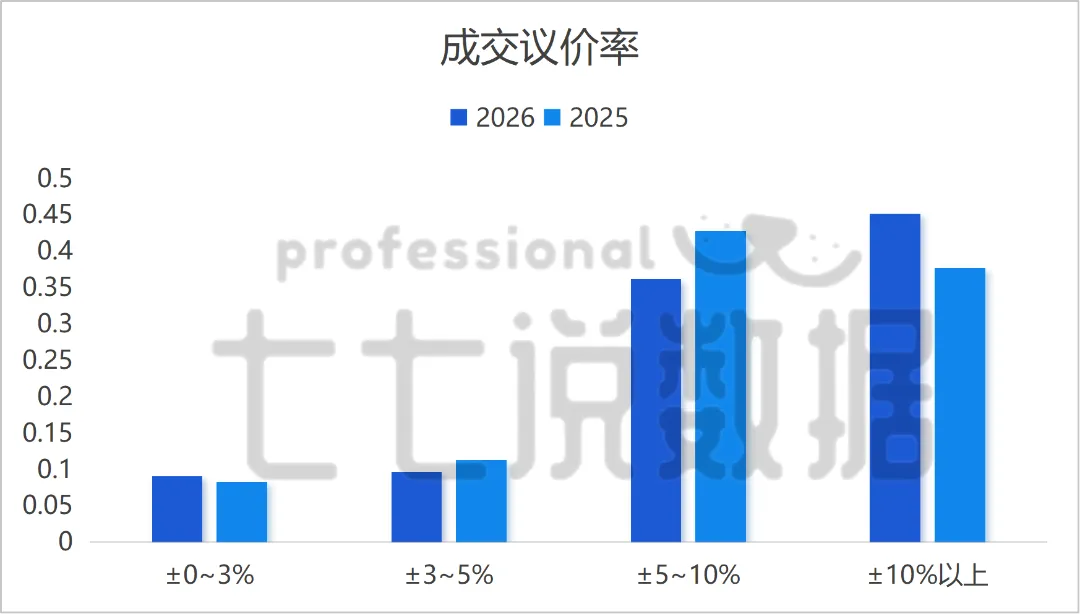 成交议价率直接反映房东与购房者的博弈格局🤝,两年同期对比,2026年议价空间彻底拉满,高议价房源疯狂增多,房东为促成成交,让步诚意拉满💪!购房者议价话语权大幅提升,买房议价空间迎来黄金期🎯!