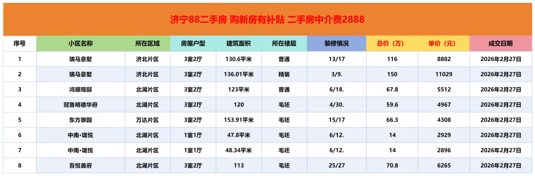 >济宁二手房成交市场价参考|2月27日