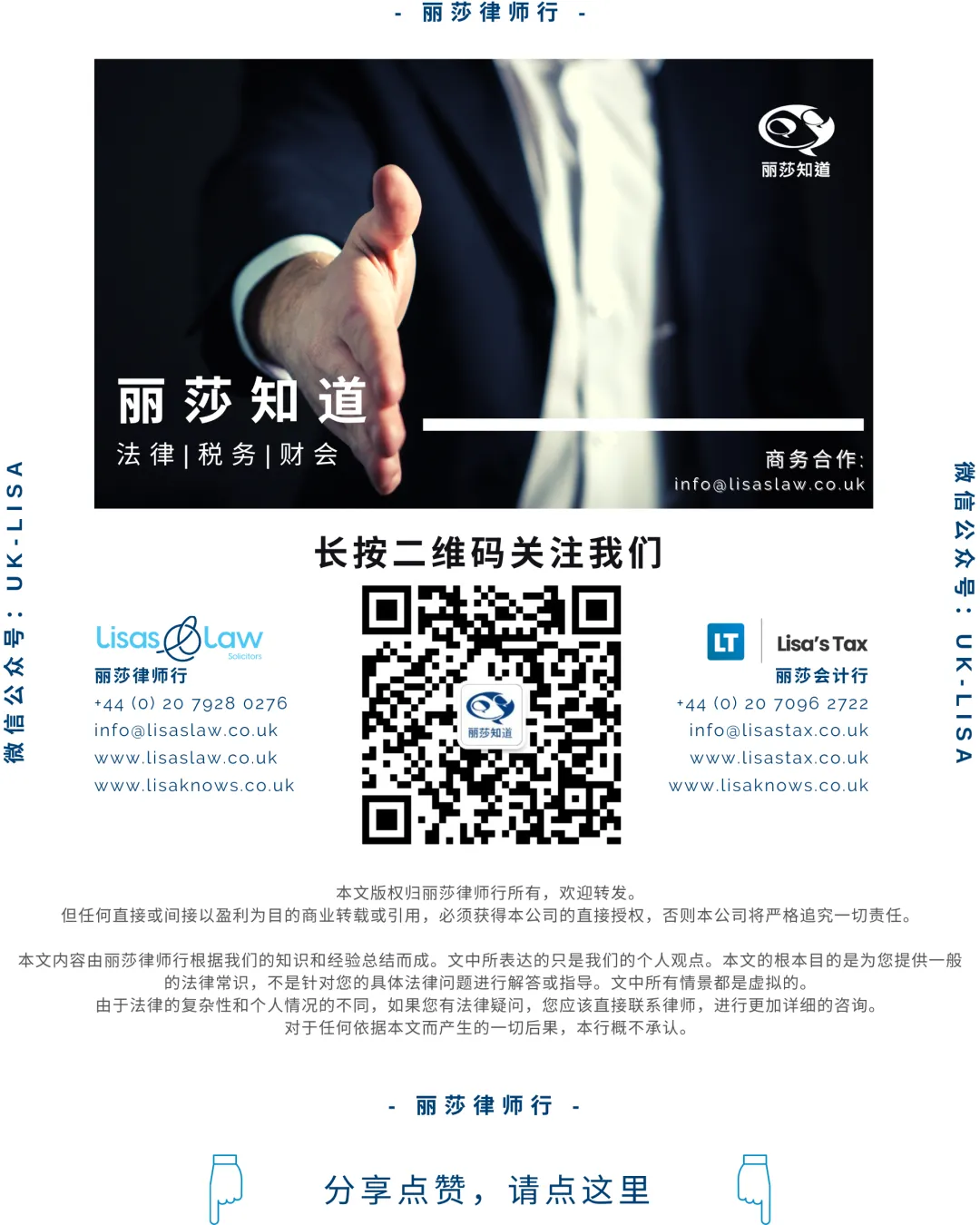 如果您有任何疑问,或者想了解更多关于我们的法律服务,欢迎随时通过丽莎律师行的官方网站与我们联系(www.lisaslaw.co.uk),我们随时为您提供专业的支持。
