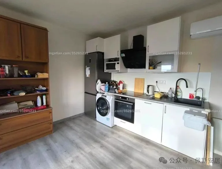 现代厨房配置,烤箱、油烟机、洗衣机等家电齐全