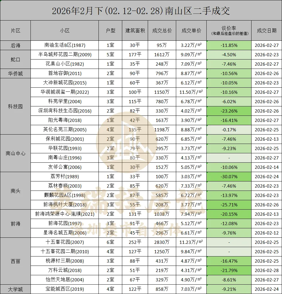 南山有【南油B区】,福田有【八卦岭宿舍】,这两个“老兄弟”继续刷新了各自区域的总价和单价下限。老破小的价格底线,继续被一次次试探。
