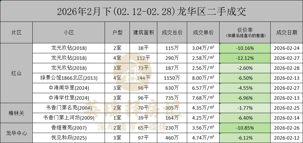 龙华区的中海双星——【闻华里】和【学仕里】,对比一手价格下跌得相对平稳。