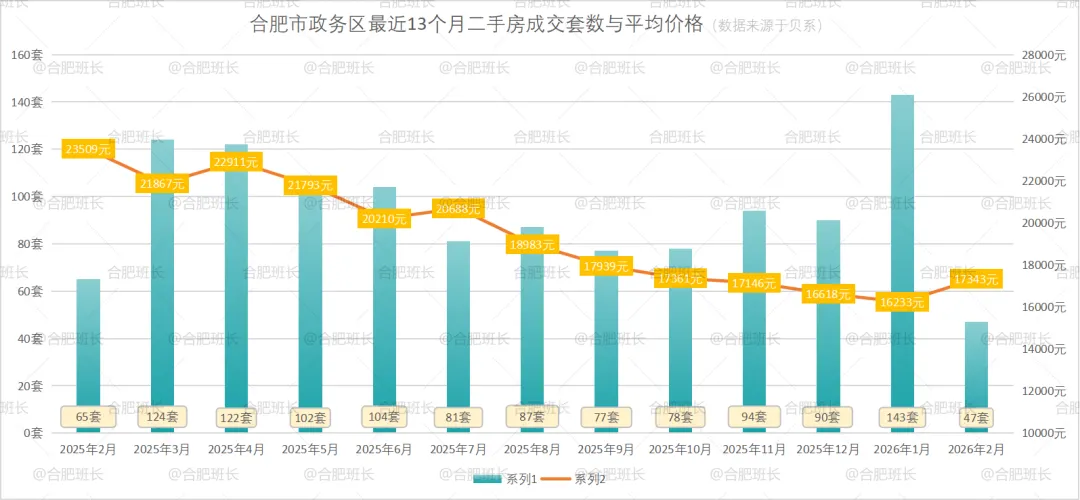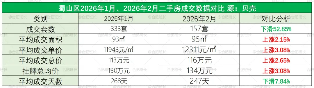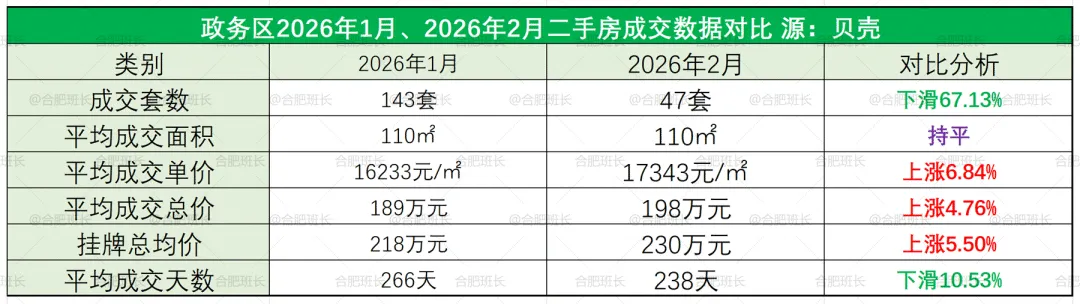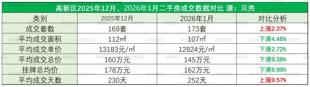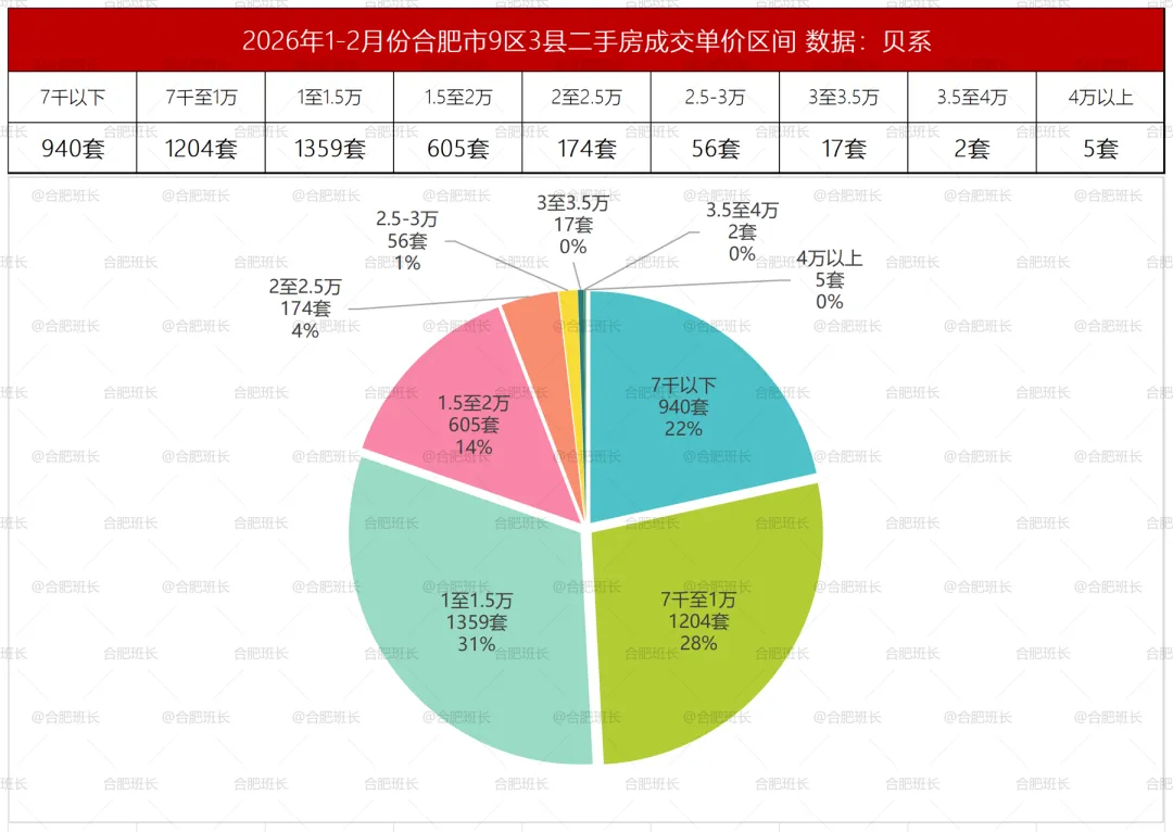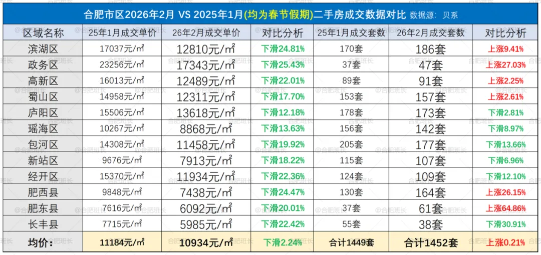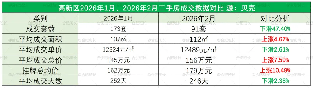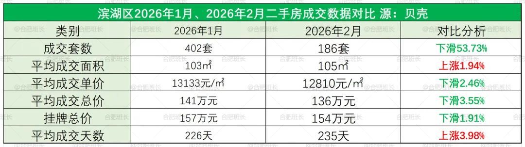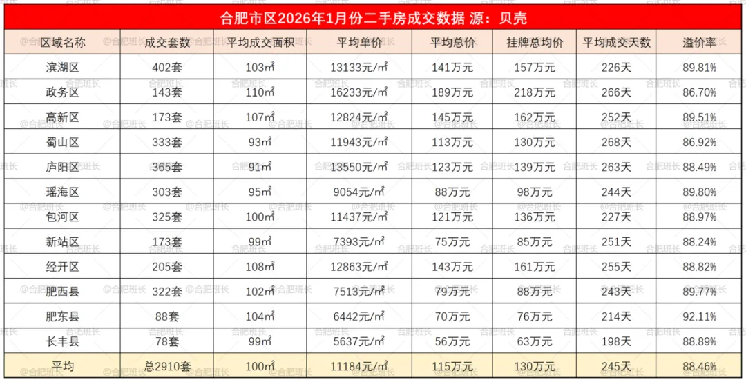 1.数据来源于贝壳,不代表2026年1-2月份合肥所有成交二手房数据,主要看一个趋势;