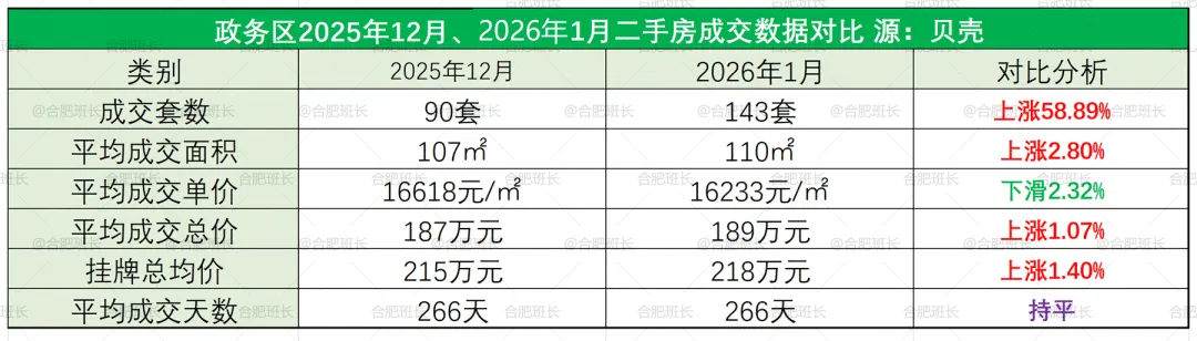 ▲2026年1月份合肥二手房成交简报