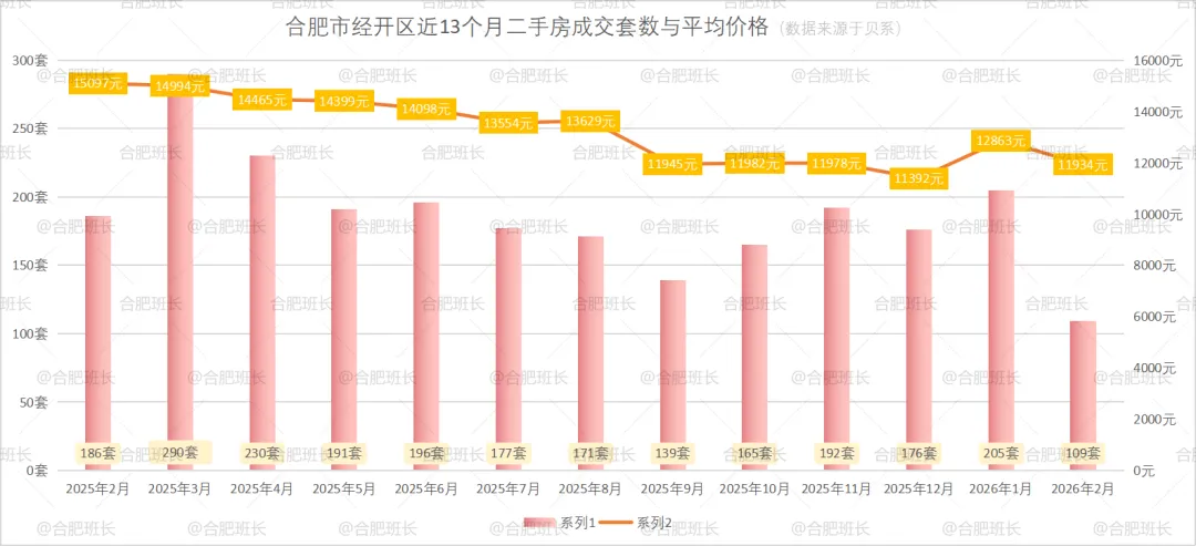 经开区26年2月份共成交109套二手房,均价11934元/㎡。