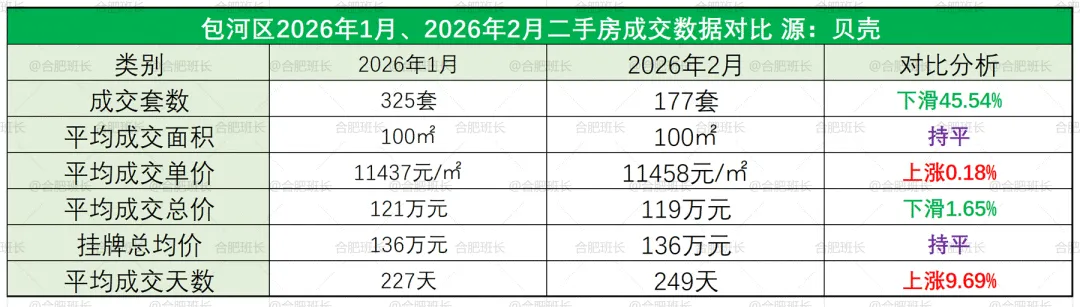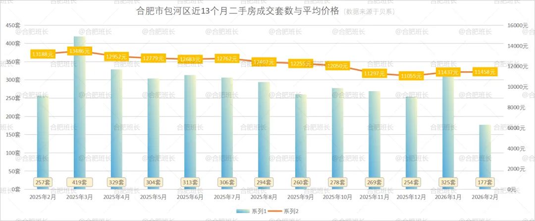 包河区26年2月份共成交177套二手房,均价11458元/㎡。