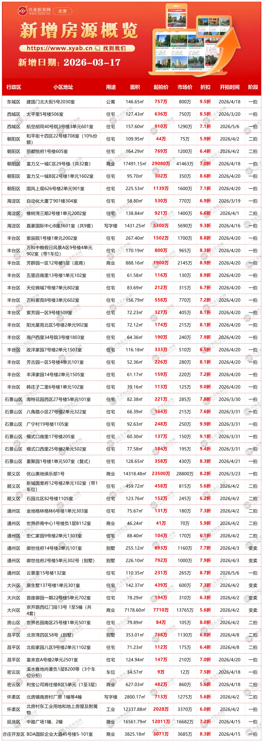 北京拍卖房产昨日新增详情