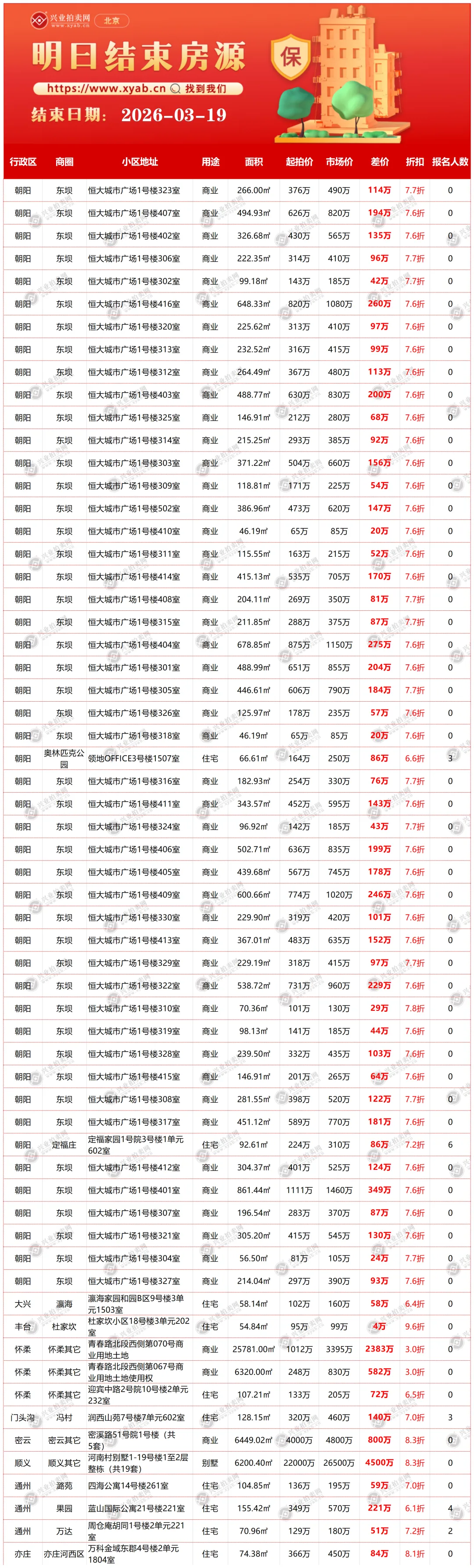 北京拍卖房产明日结束房源