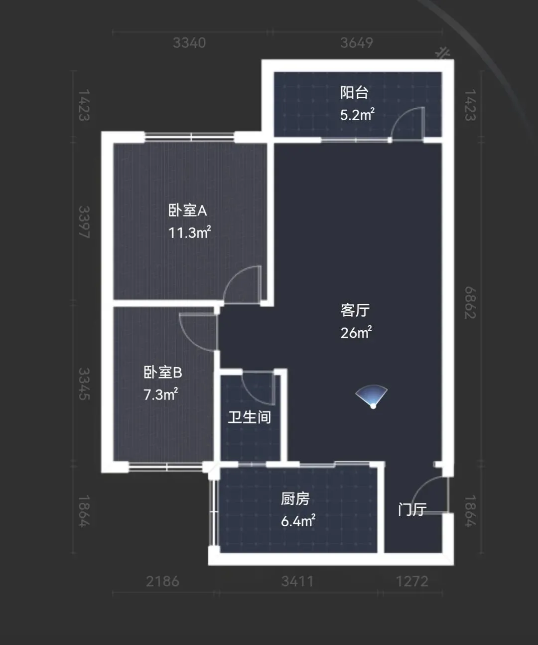✅ 房屋面积:73平米(二房二厅一卫)