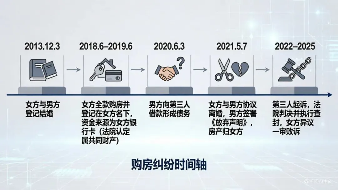 2025年12月,法院一审判决:驳回女方的诉讼请求,房产继续查封。