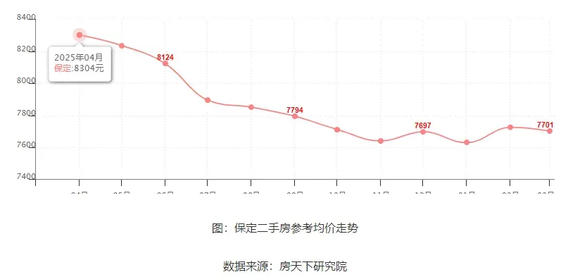 3月前两周保定二手房挂牌均价为7701元/平方米,环比下跌0.31%,而与上年同期相比,同比下跌7.57%。