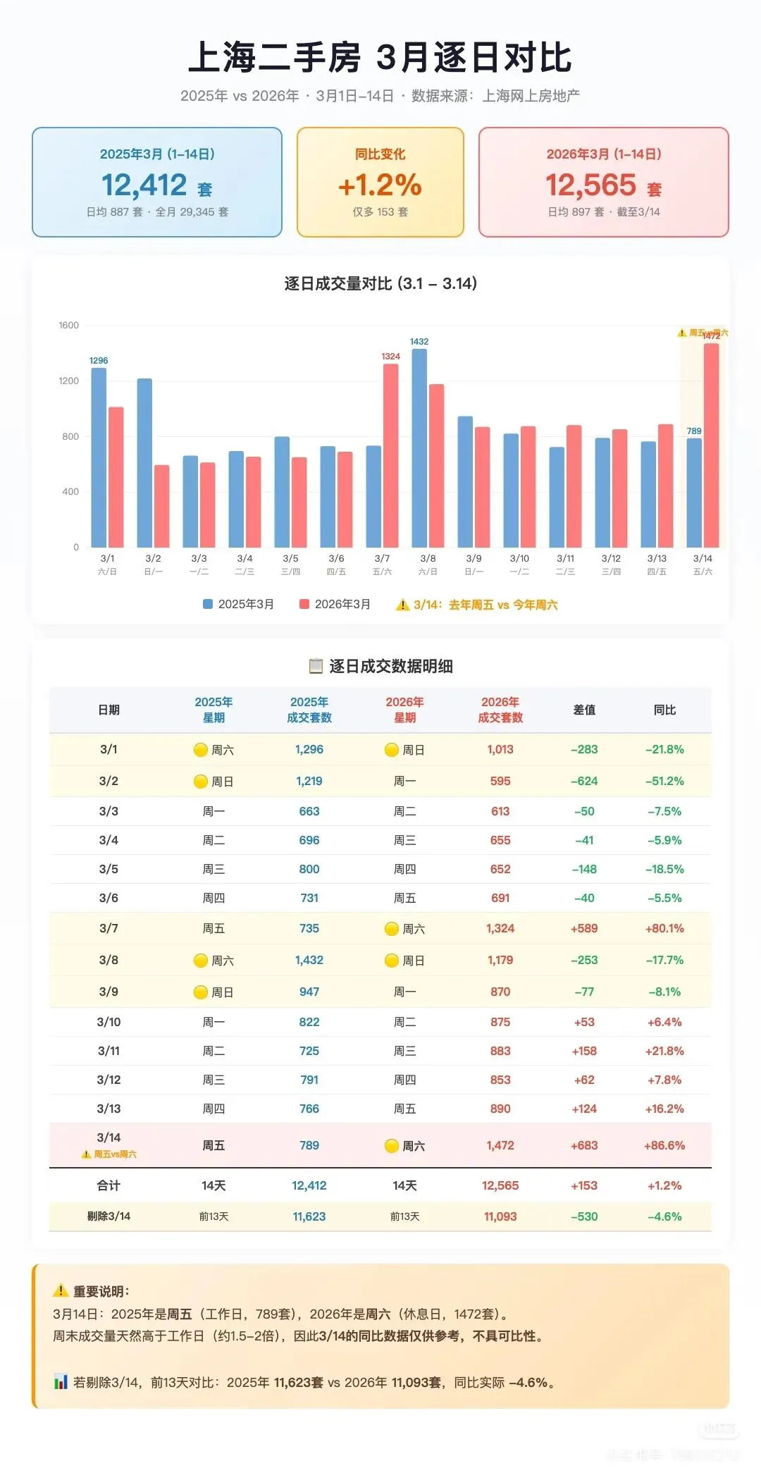 3月9日-15日,上海二手房单周网签7233套,刷新2021年以来纪录,周末两天单日成交均超1300套,中介直言忙到无暇吃饭,优质房源出现多客争抢的情况。3月刚过半,二手房累计成交已近1.4万套,保守预估全月有望冲击2.7万套。