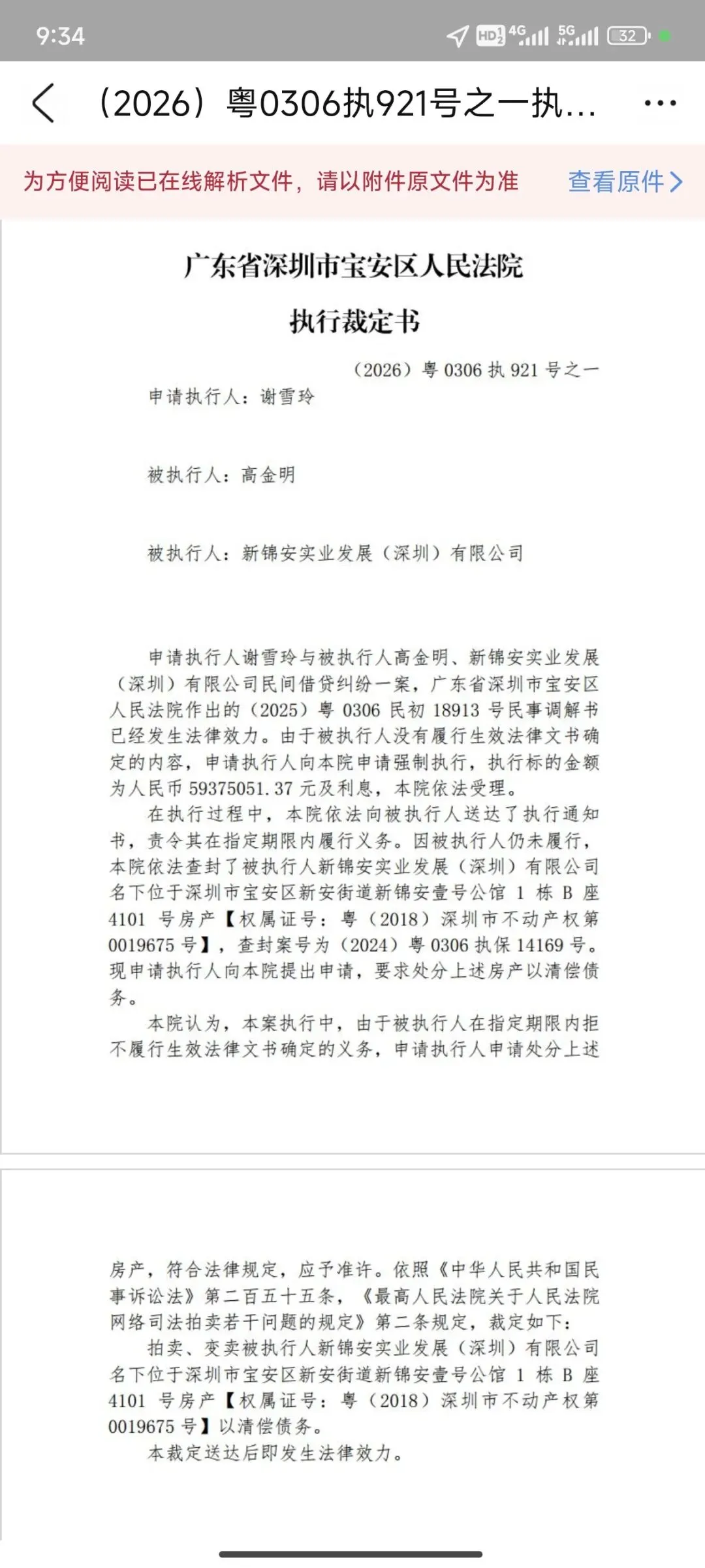 拍卖原因:民间借贷