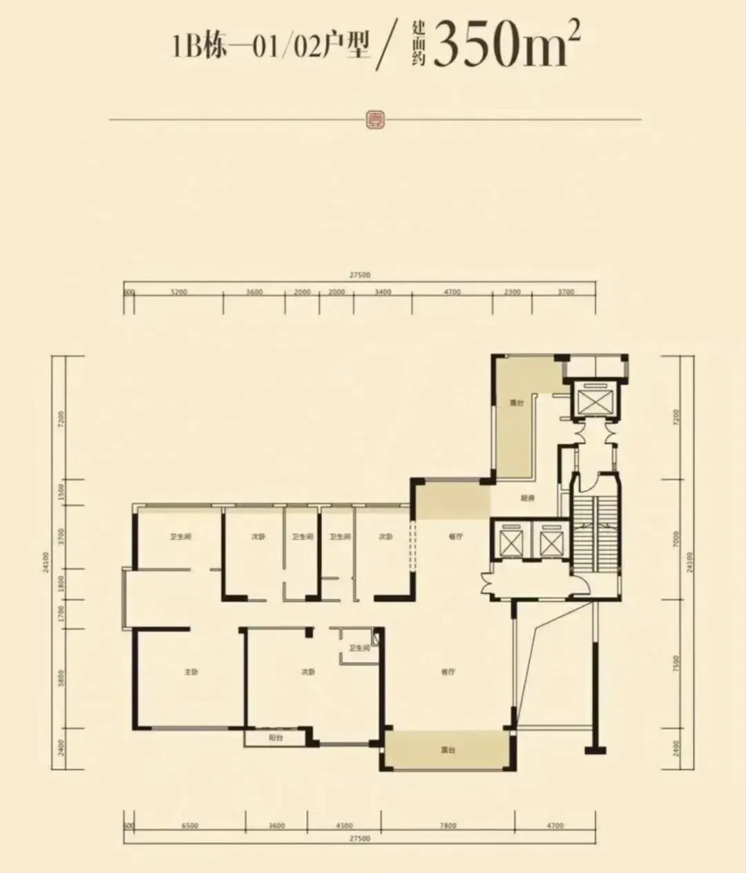 - 主力户型为250-352㎡大平层,包括4-6房,层高3.15米,南北通透,得房率较高,部分户型客厅开间达7.8米,主卧开间6.5米,空间尺度感强。