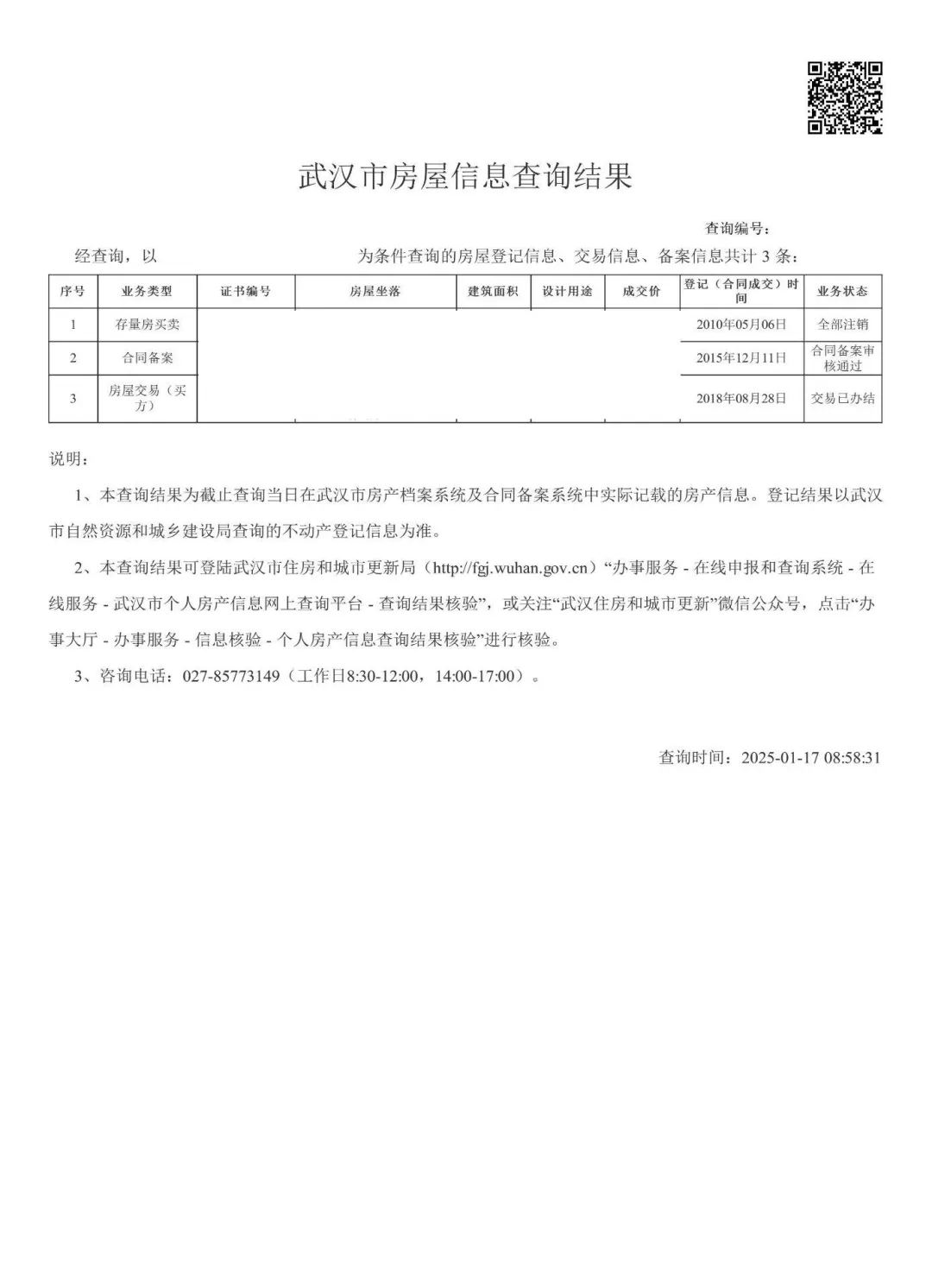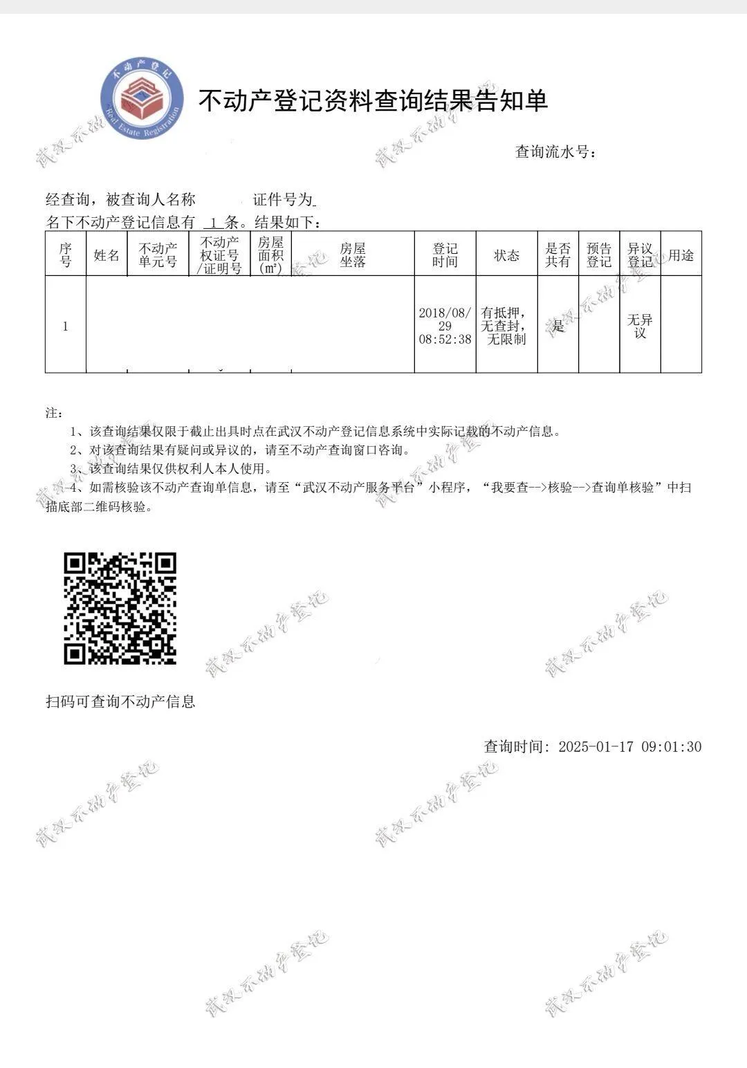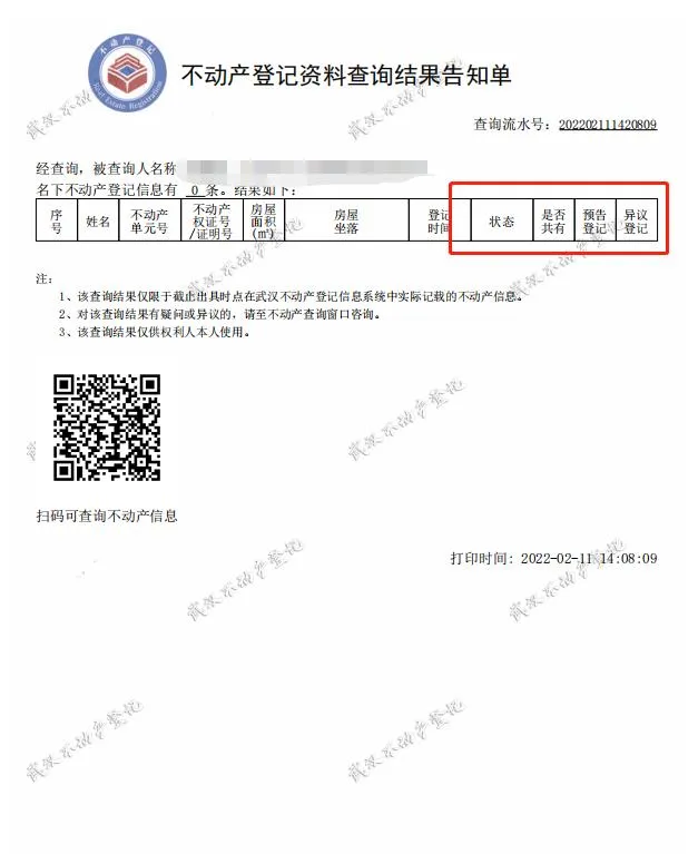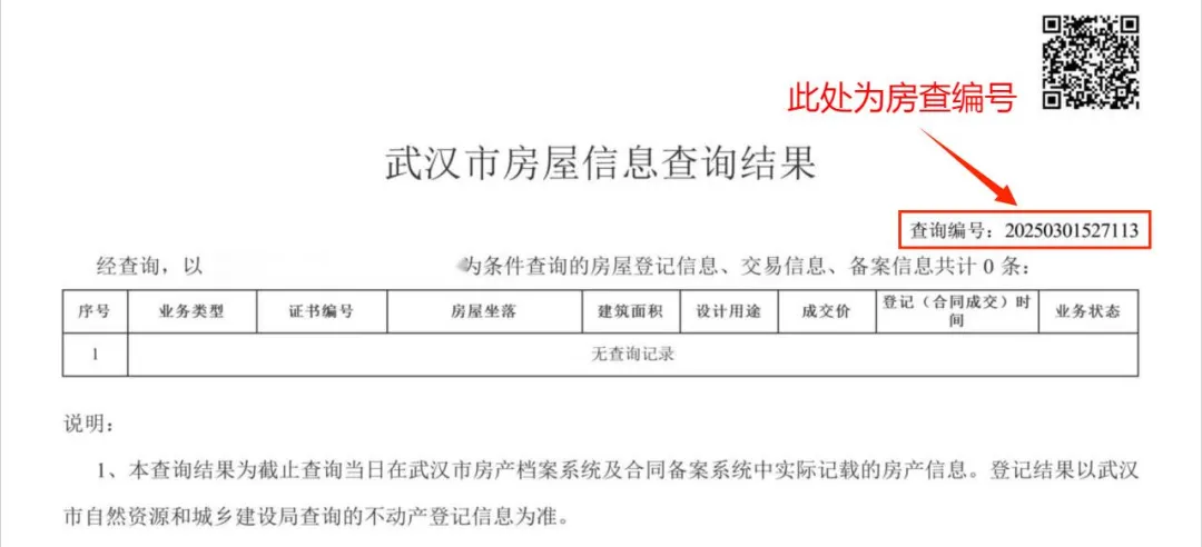 查询结果右上角的查询编号号为房查编号
