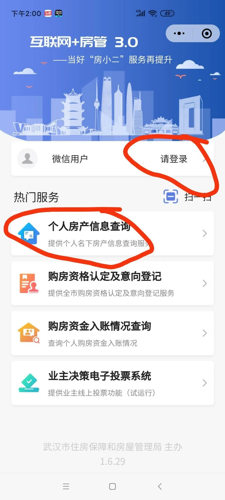(2)进入小程序后登录账号,随后点击“个人房产信息查询”