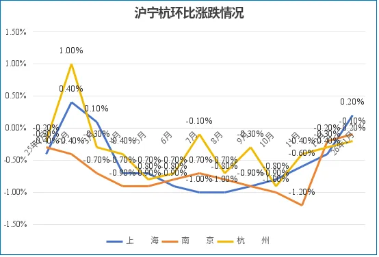 2月:上海环比上涨0.2%,南京环比跌幅收窄0.1个百分点至-0.1%,杭州跌幅收窄0.1个百分点至-0.2%。
