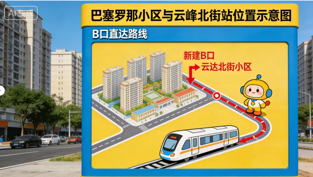 咱先说说这憋屈的日子,地铁 1 号线 2010 年就通了,云峰北街站就俩口,全搁马路东侧,巴塞罗那这帮小区的老铁,出门坐地铁那叫一个费劲!高峰期挤着过街,下雨天蹚水绕路,这一绕就是十来年,天天急头白脸赶地铁,膈应得够呛!大伙早就盼着西侧能开个口,这规划年年提,就是没动静,老铁们的心都凉了半截,寻思这地铁口怕是要黄了。