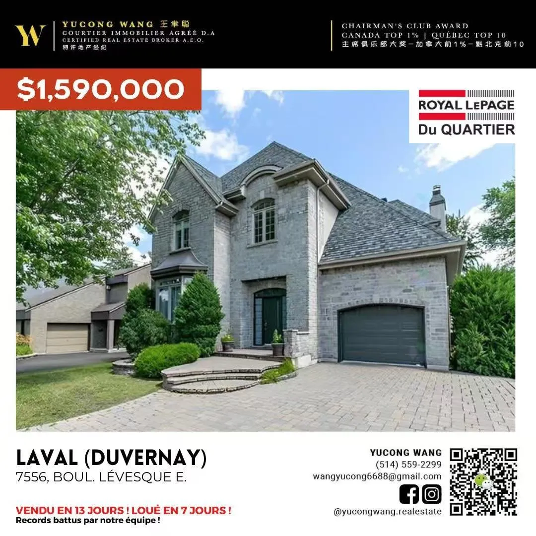 欢迎来到位于蒙特利尔北岸Laval Duvernay心脏地带 7556 Boul. Lévesque E., Laval (Duvernay),由王聿聪地产团队独家代理的独立别墅。