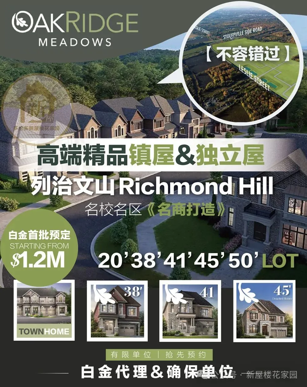 【抢先一步】名校名区Oakridge Meadows高端精品38'45'及50'Lot最新独立屋及无管理费镇屋VIP内部抢购