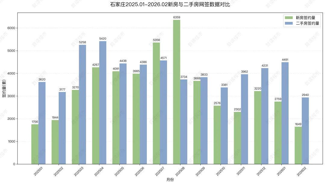 石家庄2025年与2026年1-2月新房及二手房签约数据对比如下:- 2025年1-2月新房:签约量3700套,总面积456165.42㎡,套均面积123.29㎡