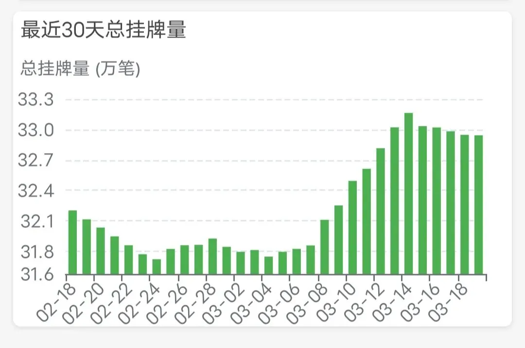 2⃣️挂牌量变化不大,基本维持供需平衡,目前为329422笔。