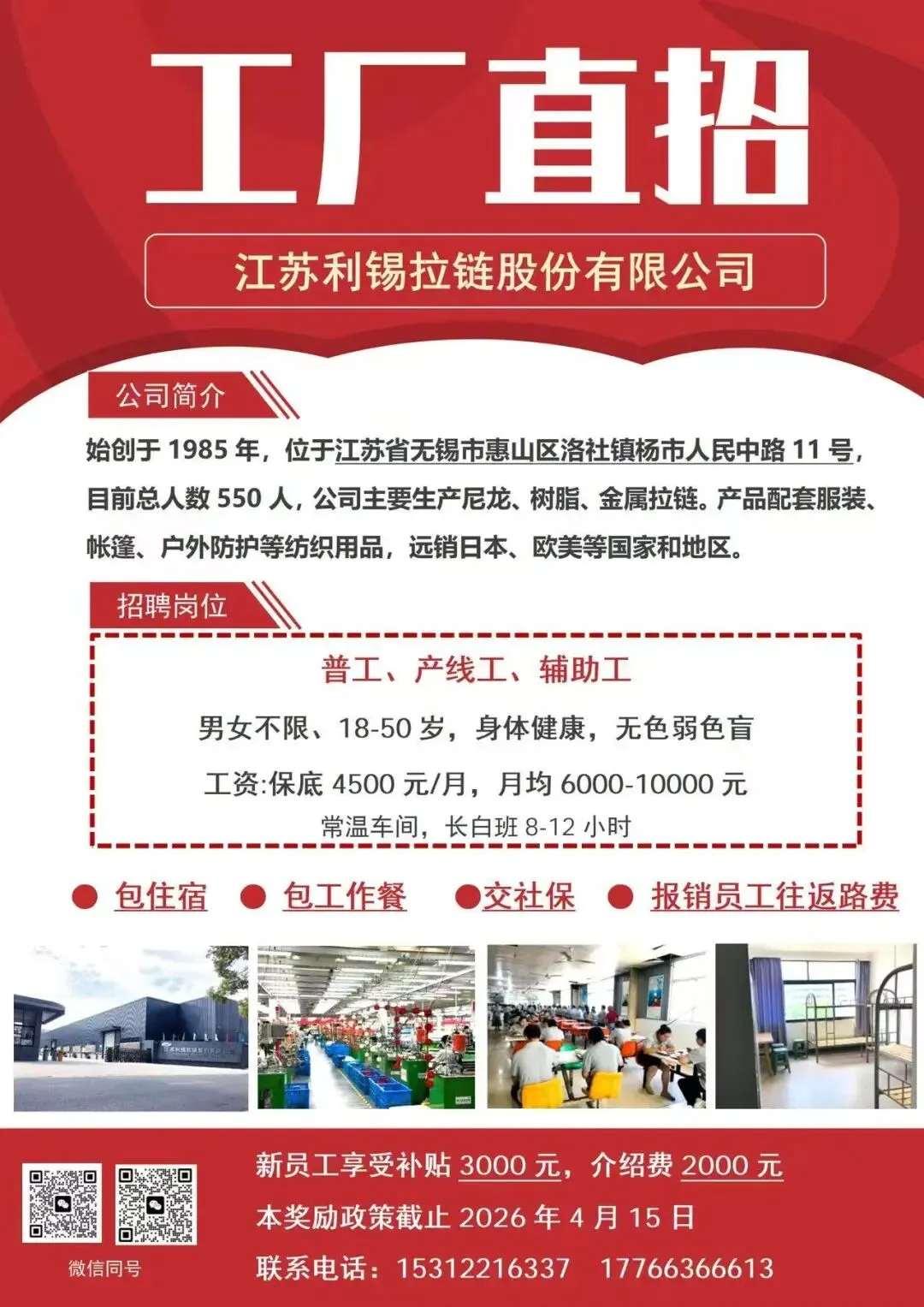 江苏利锡拉链股份有限公司招聘(4.7)