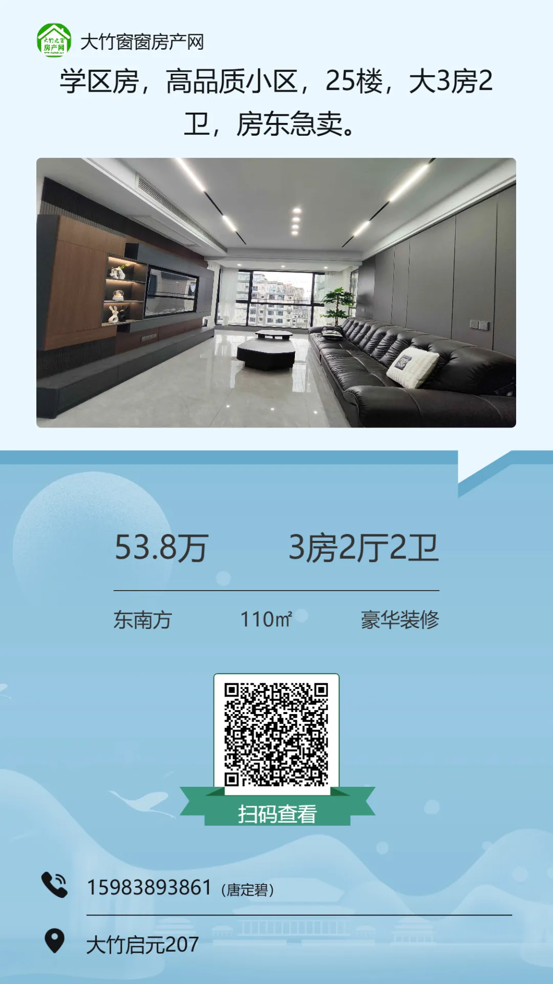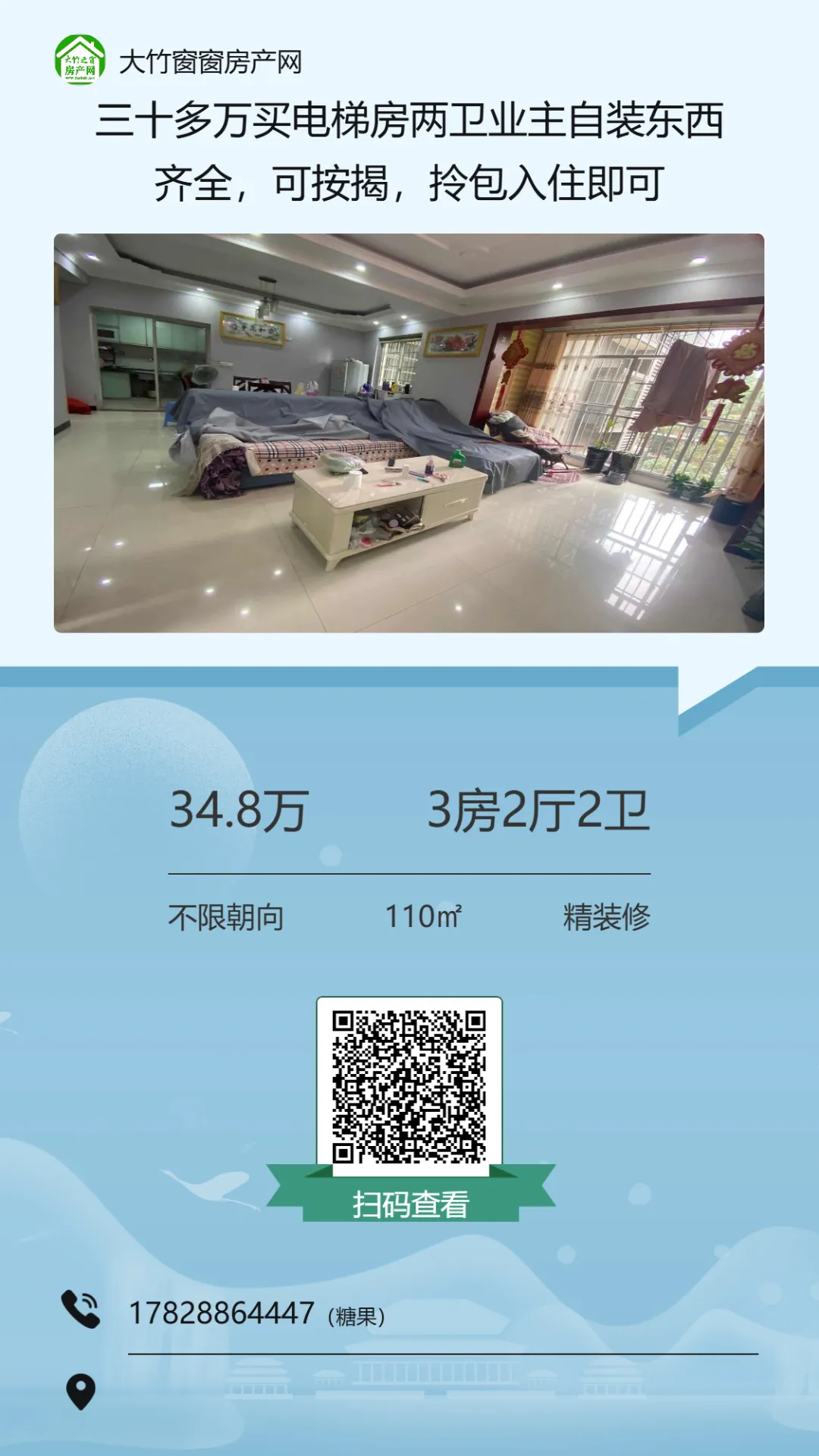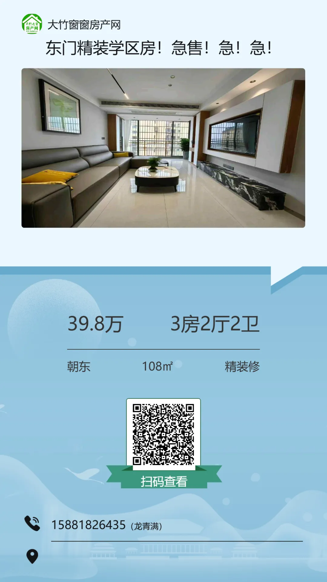 >【大竹房产】新小区,全新装修的三房,业主急卖