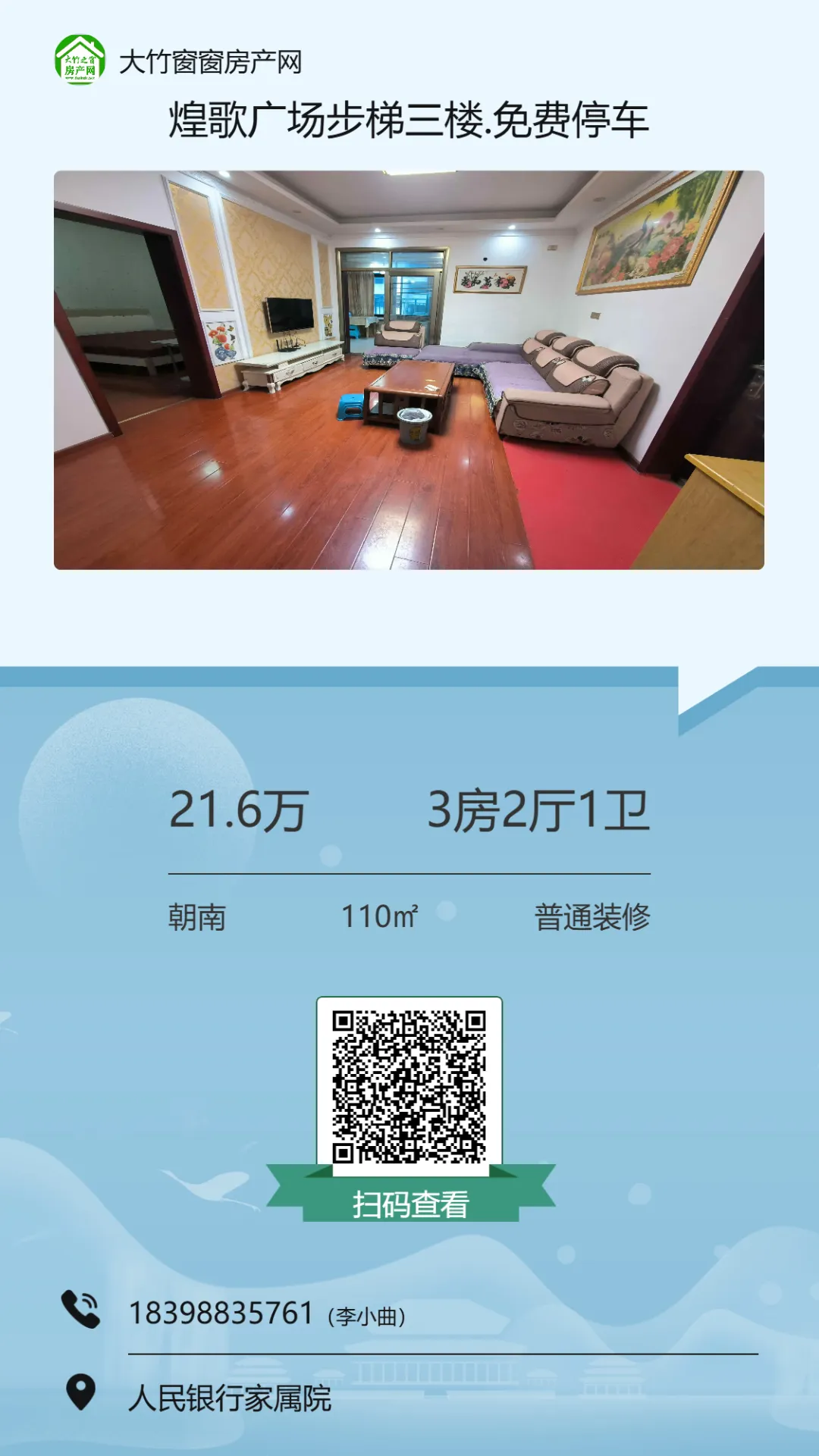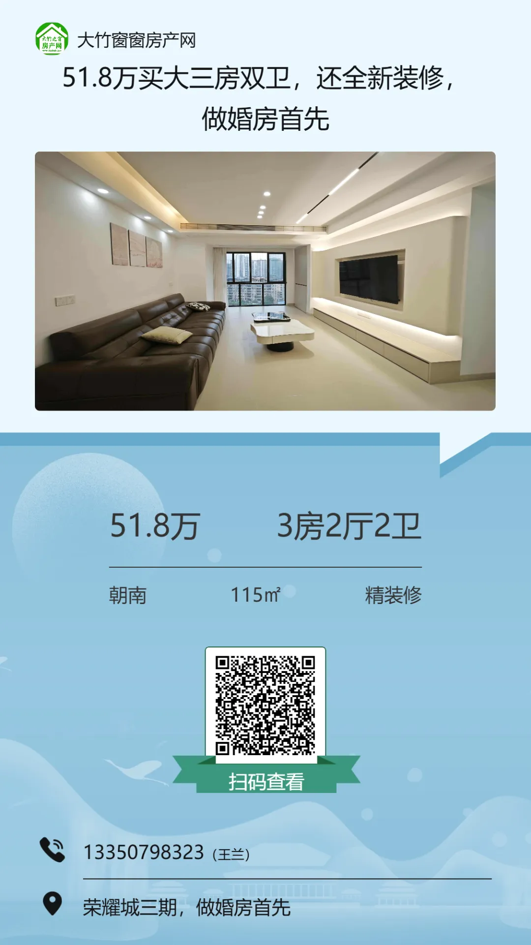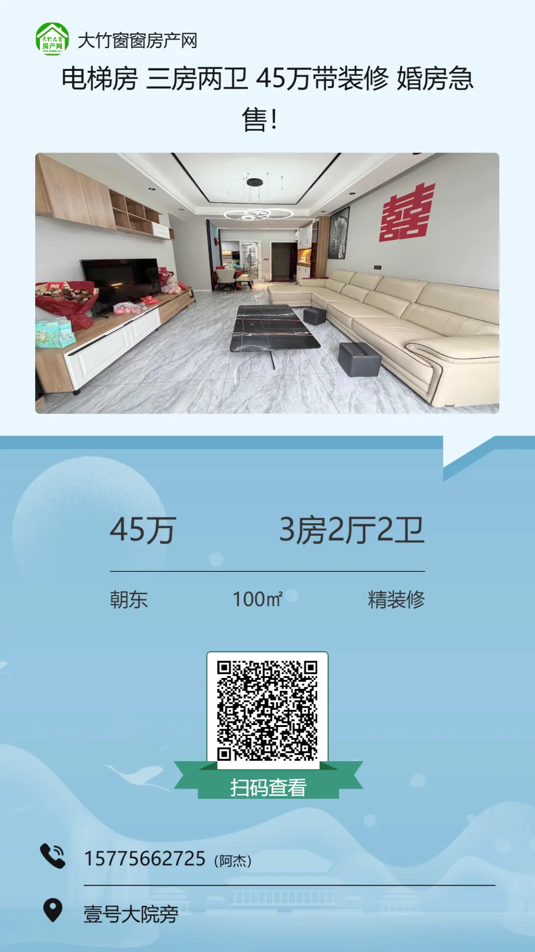 >【大竹房产】新小区,全新装修的三房,业主急卖