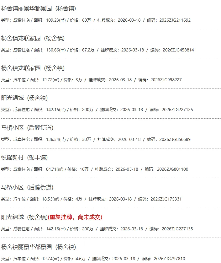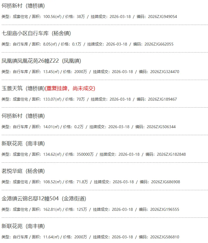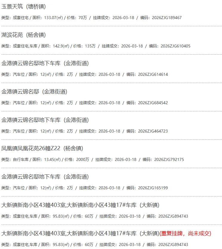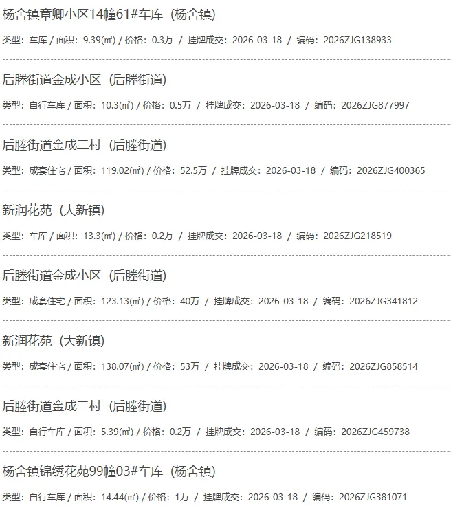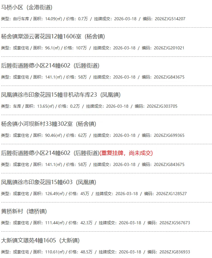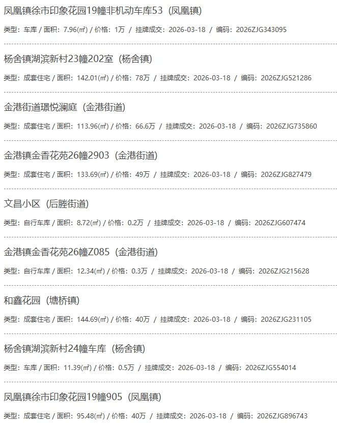 根据张家港房产网(www.zjgzf.cn)整理,(2026-03-18至2026-03-18)总共88套二手房网签挂牌成交(含自行车库及汽车库),数据根据住建局官方网签平台整理,并已同步至各对应小区的成交明细,特别提醒:此处数据及各小区成交数据中凡标注(来自网签挂牌)的,均是根据政府网签挂牌系统整理,价格可能不准,请谨慎采信;并仅作为您买房卖房的参考而非决定依据。以下为数据明细: