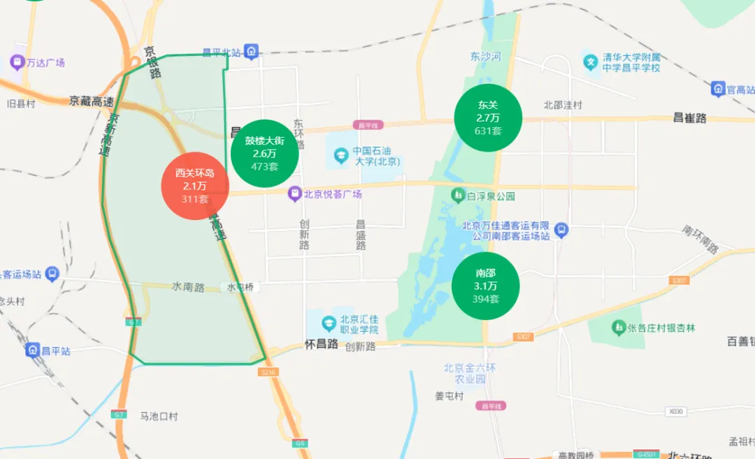 我将整个昌平区的主要居住片区划分为四个大片区,给大家做逐步分析