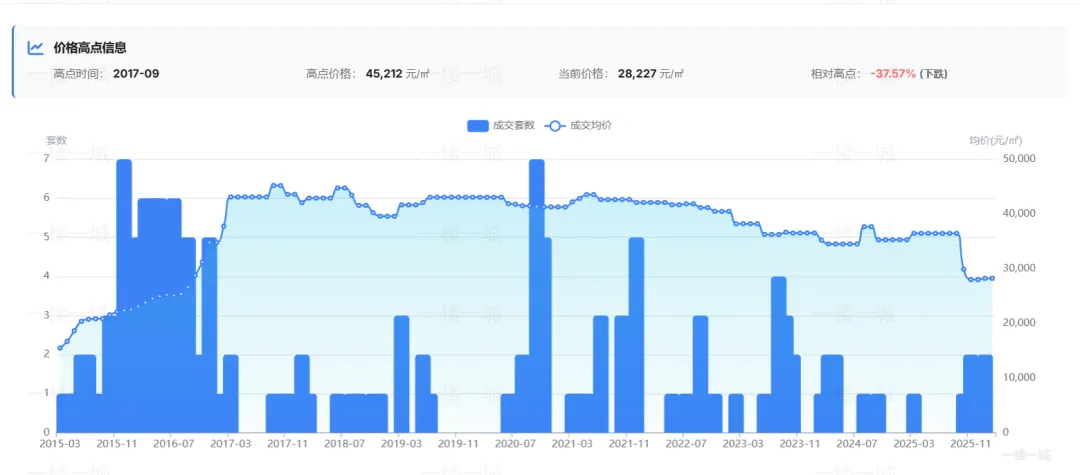 但在过去一年断崖式下降,因为去年还保持3.5万/㎡的价格,导致流通变弱
