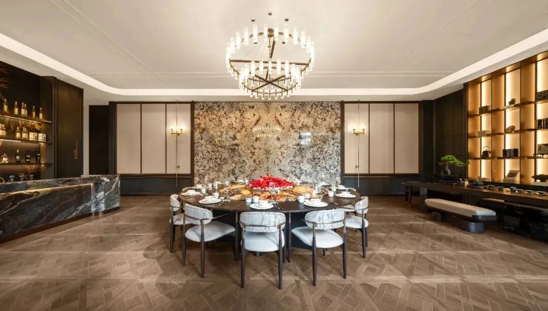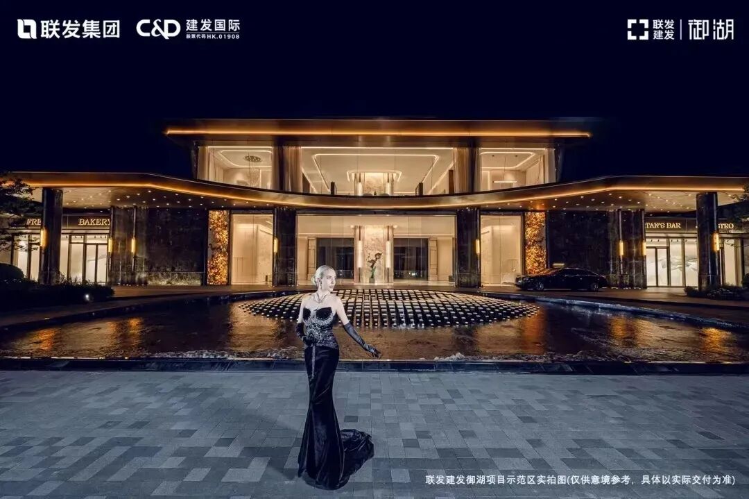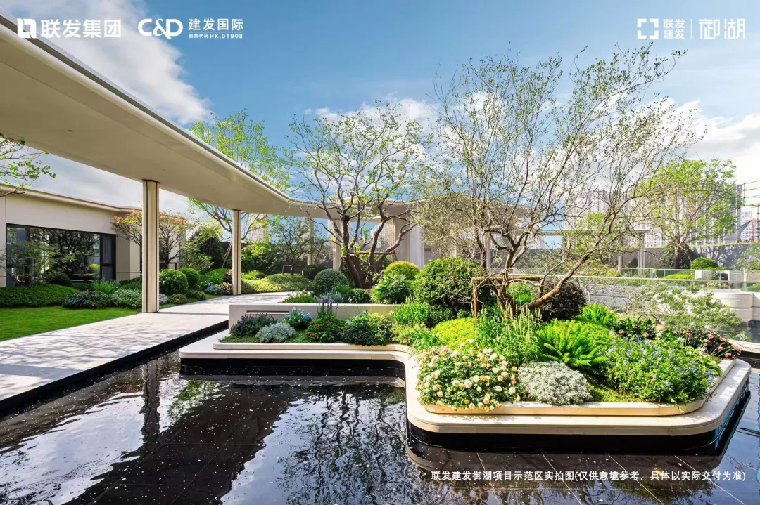 例如联发建发御湖,从归家的超级通道星级酒店式环岛落客区,到高约11.5m、宽超50m的奢阔社区大门,耗巨资打造的湖景私宴厅、雅集茶室等高定空间,再到约72m艺术风雨连廊等景观节点,都已经实景呈现。