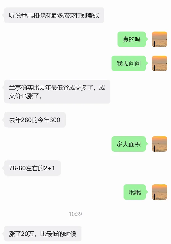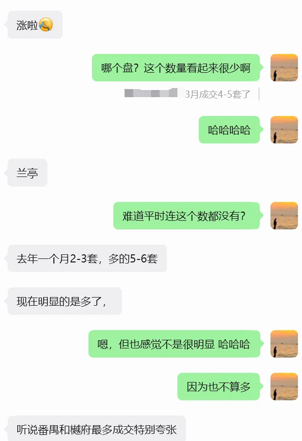 另外,他还说,兰亭盛荟最近成交的价格也涨了。同样的78-80㎡的3房,去年成交在280万左右,最近成交价最低去到300万左右了,涨了约20万。