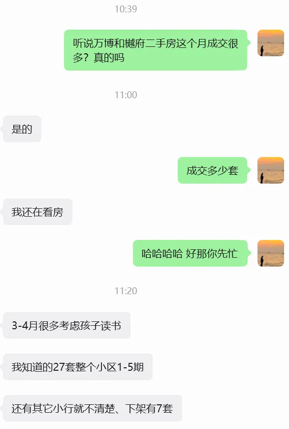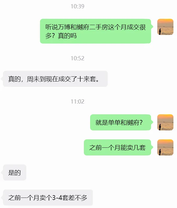 第一位中介朋友@老陈跟我说:周末到现在,仅5天时间,万博和樾府二手房已经成交10多套了!而之前一个月都只能成交3-4套!