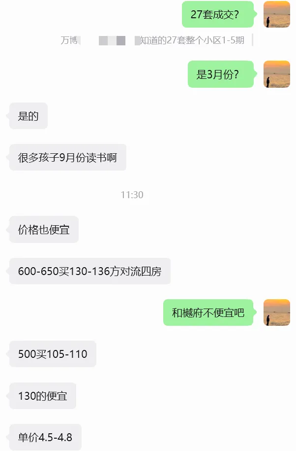 而万博另一位中介朋友@老郑也告诉我说:3月截止目前,万博和樾府1期-5期,已经卖了27套二手房了,并且下降了7套房源,这还不包括其他小中介成交的。