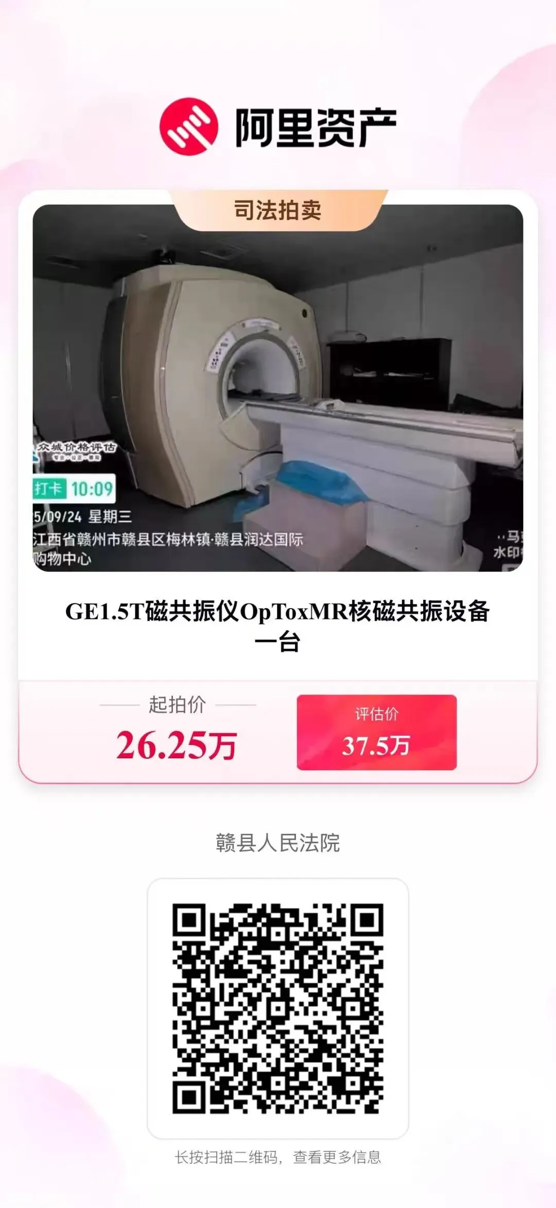 特别提醒:设备已断电,长期断电可能会导致设备出现问题,竞买成功后以现状交付,需自行联系GE医疗的官方售后服务工程师进行检测及后续搬迁安装。