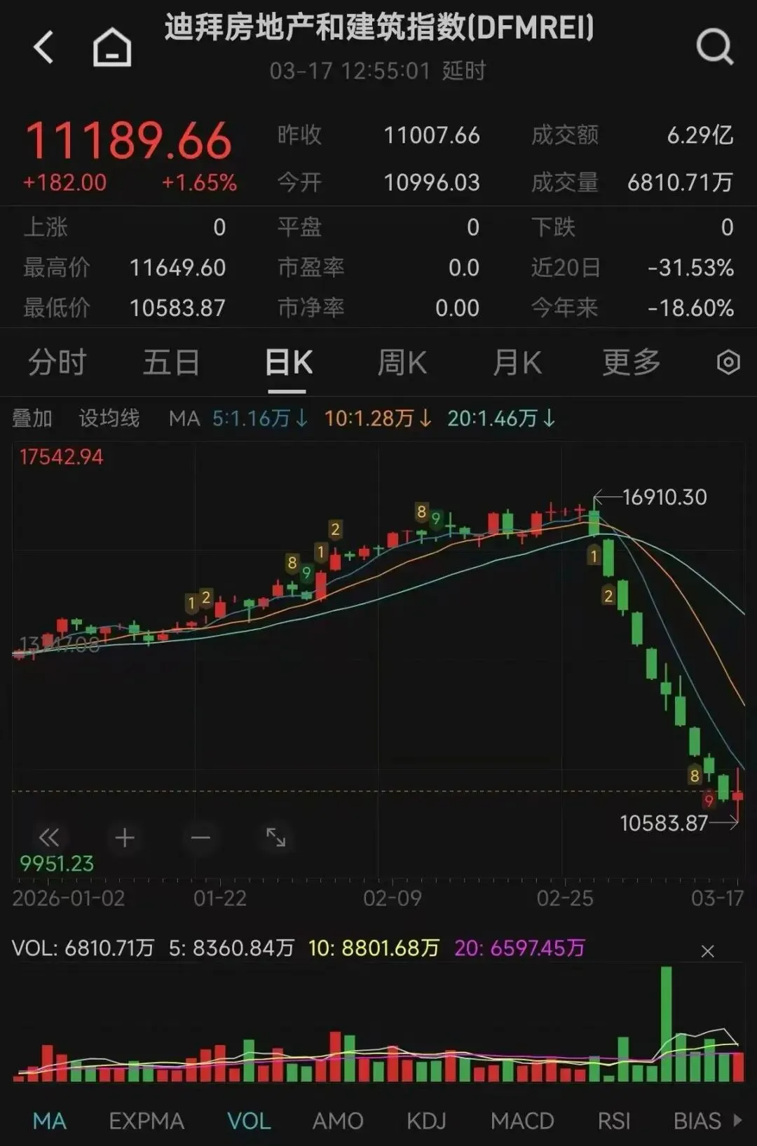 据Wind数据,迪拜房地产和建筑指数(DFMREI)自2月下旬以来出现明显下跌,近20日跌幅超过30%。