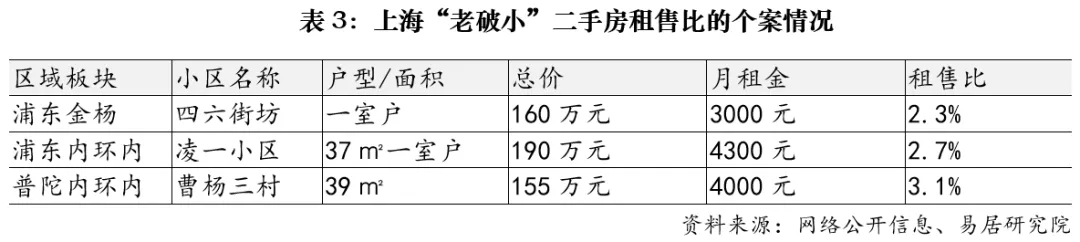 从表中可见,目前上海市区“老破小”相关个案的租售比普遍在2.3%到3.1%之间。在低利率环境下,这一收益率不仅远高于1年期国债收益率,也已跑赢多数银行理财。这也正是为何尽管房源老旧,仍能吸引购房者入场的原因,即月供和租金差不多了。