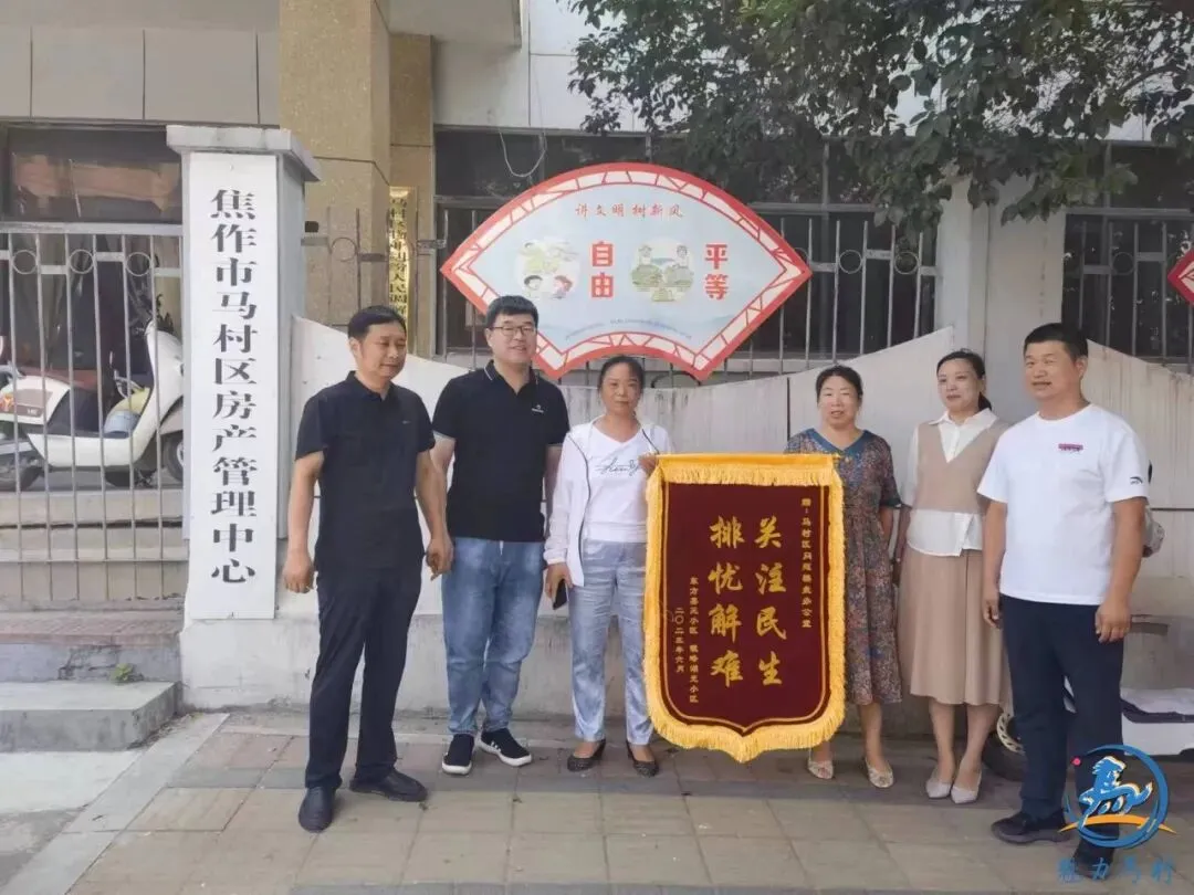 “真的很感谢你们,为我们解决了大难题,住了这么多年的房子终于有证了。”近日,马村区东方嘉苑小区、银峰湖光小区业主代表将一面印有“关注民生 排忧解难”字样的锦旗送到马村区房产管理中心,感谢区问题楼盘化解工作专班在积极协调小区不动产权办证难问题中所付出的努力。