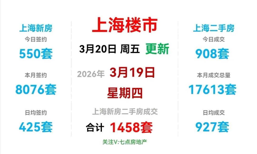 昨日(3月19日,周四),上海新房和上海二手房成交量合计1458套。
