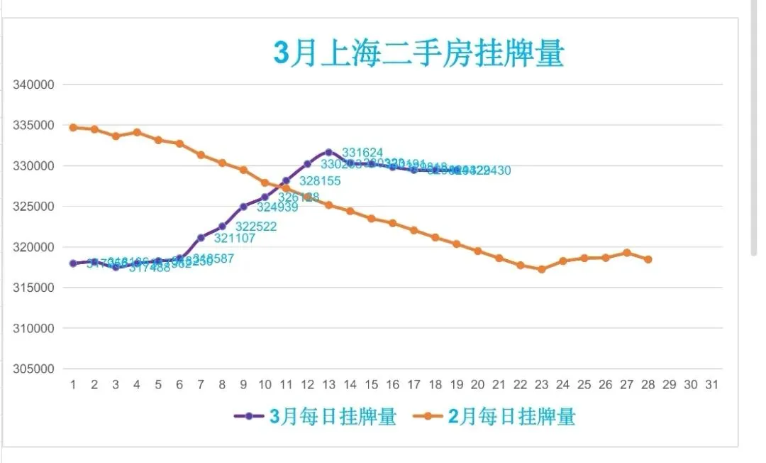 🏠昨日(3月19日,周四)挂牌329430笔,较前一日增加8笔,日均挂牌324826笔,约32.48万笔,挂牌与实际成交比350:1,去化周期约11.7个月。