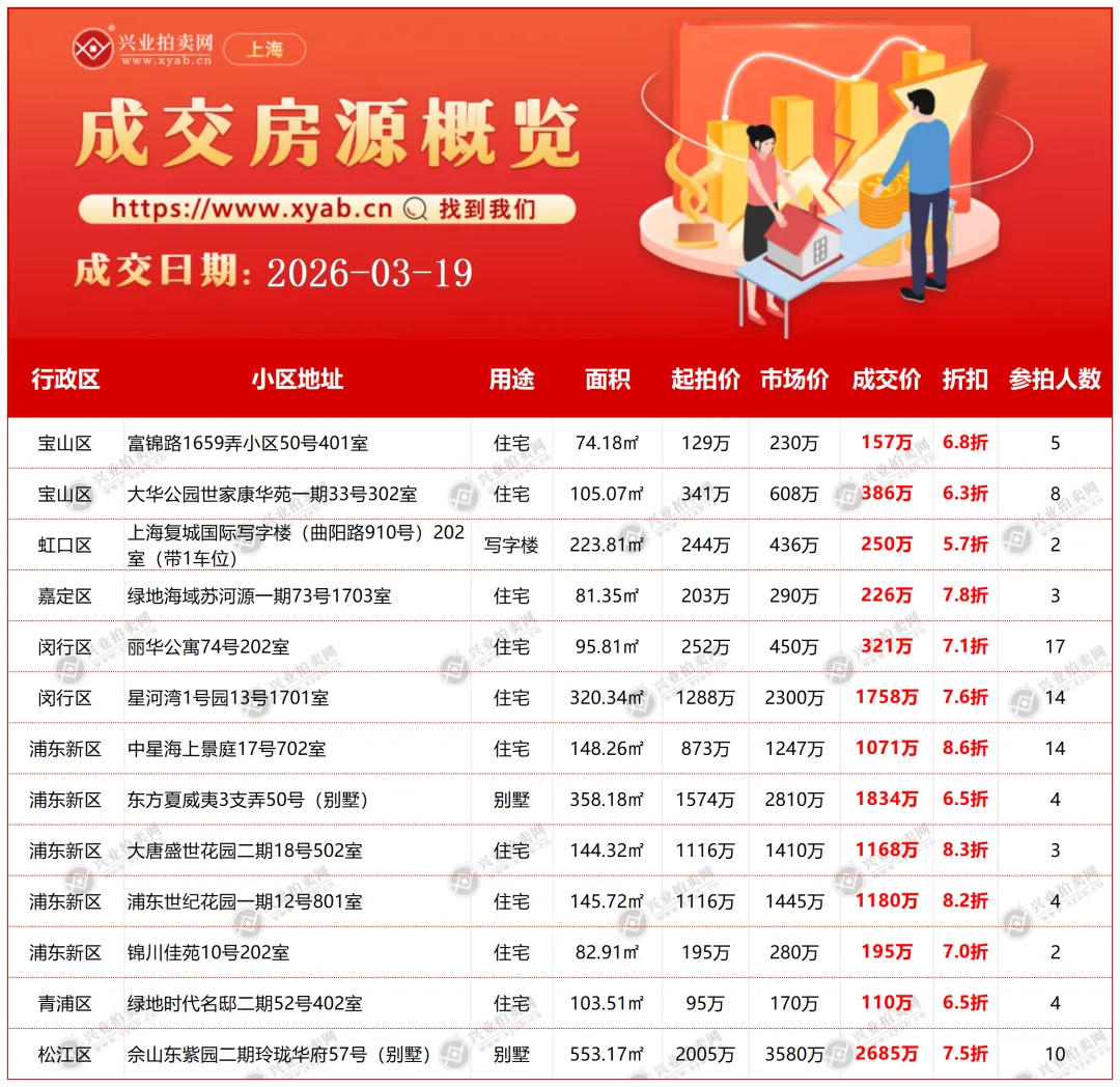 上海拍卖房产昨日成交详情