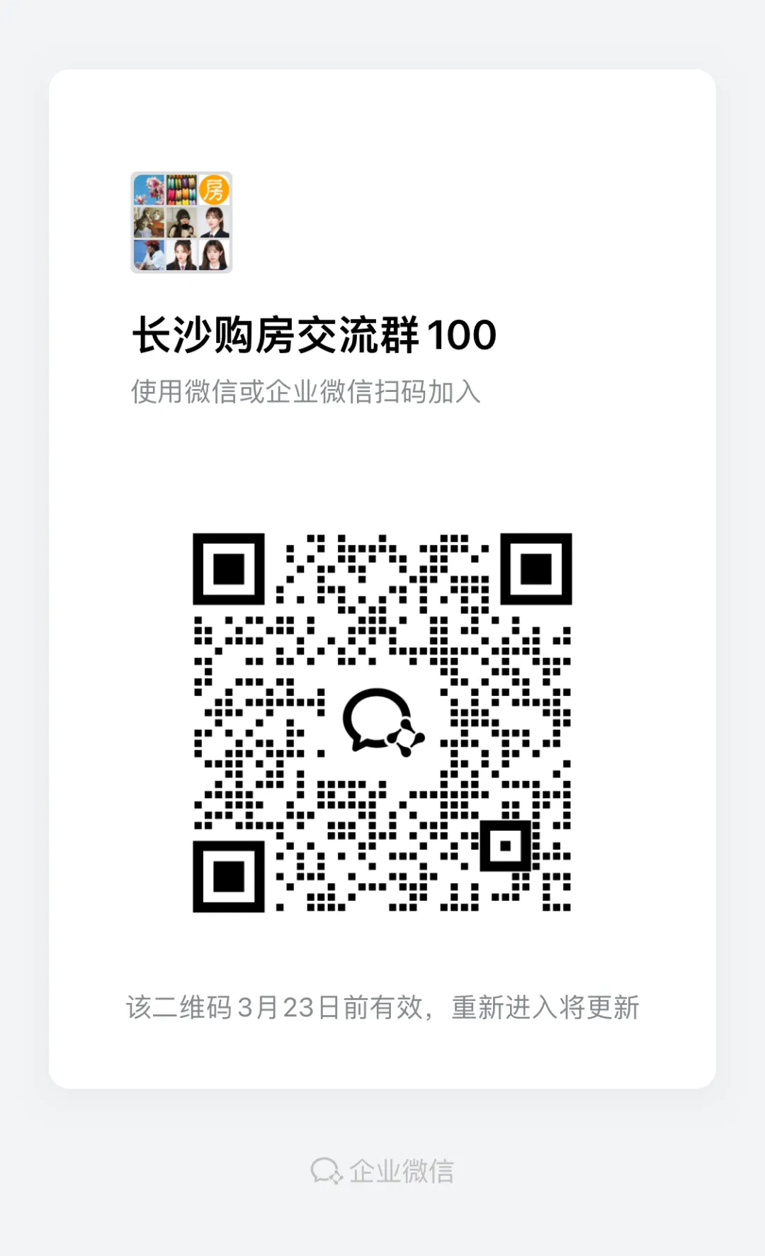 长沙购房交流群已开建!欢迎进群占座,这里有购房者经验交流,最新房产资讯分享,项目信息早知道!赶紧扫码进群吧!