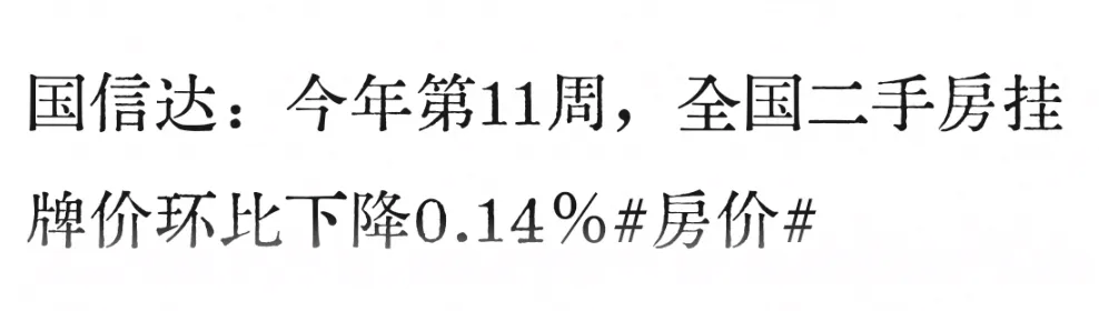 >今年第11周,全国二手房挂牌价环比下降0.14%